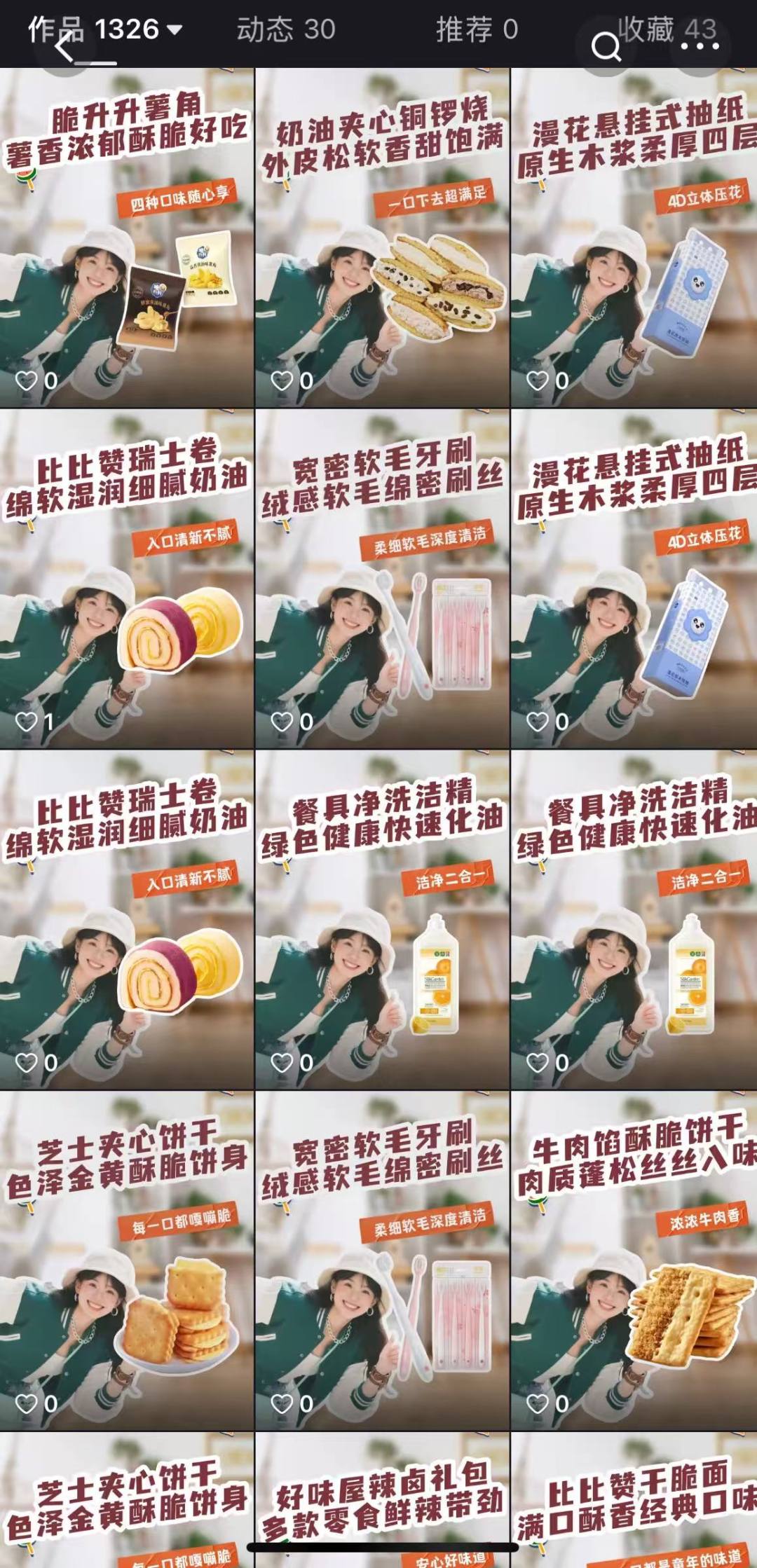记者查看了他们运营的账号:1000多条视频,每日封面如出一辙——都是一位女生手持产品,只是产品不同,有时是零食,有时是日用品,几乎所有视频的点赞数都为零,与课堂上所宣称的“精准推流”和“高质量视频”效果相去甚远。