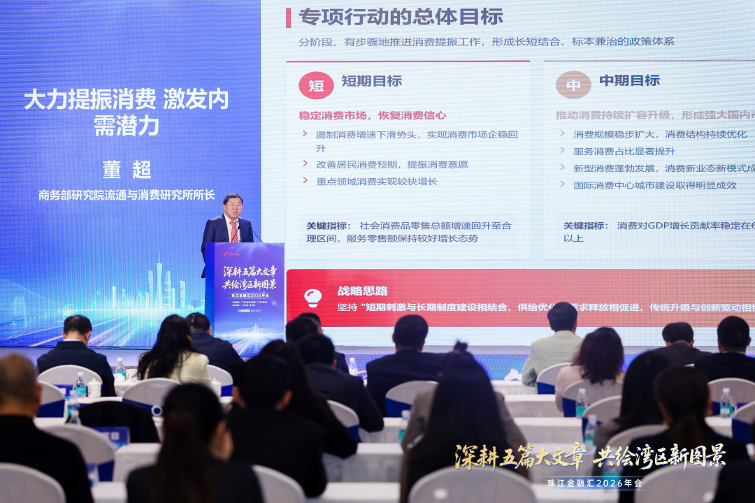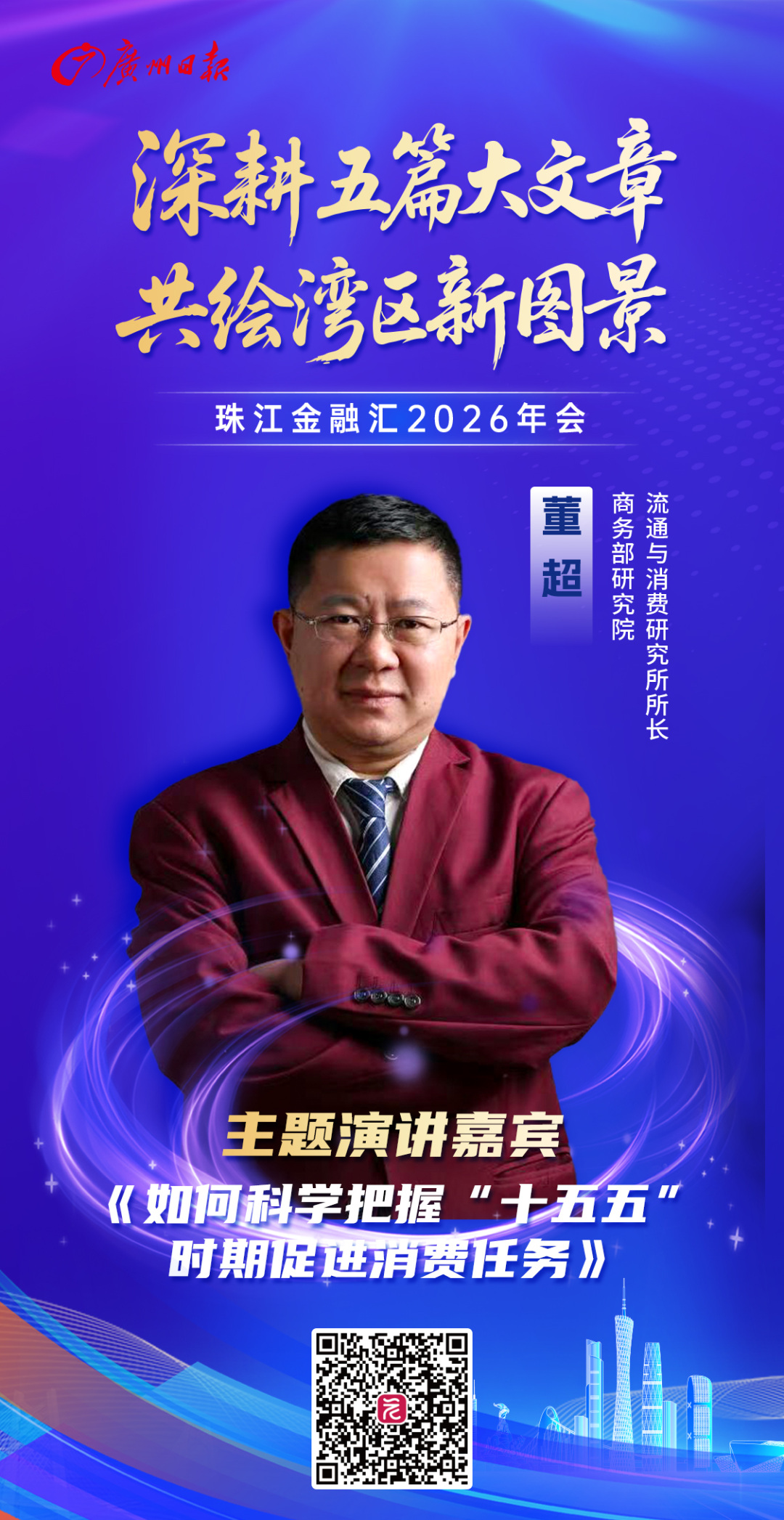 “十五五”新开局,如何进一步有效提振消费?2月5日,由广州日报报业集团主办的“深耕‘五篇大文章’ 共绘湾区新图景——珠江金融汇2026年会”在广州举行。在年会现场,商务部研究院流通与消费研究所所长董超表示,提升能力是基础,优化供给是关键,创新场景是引领,深化改革是保障,这些举措共同构成促进消费的完整政策体系,让市民有钱花、有处花、愿意花、放心花。“只有多措并举、协同推进,才能形成消费持续扩大的长效机制,实现消费与生产、分配、流通的良性循环。”董超说。