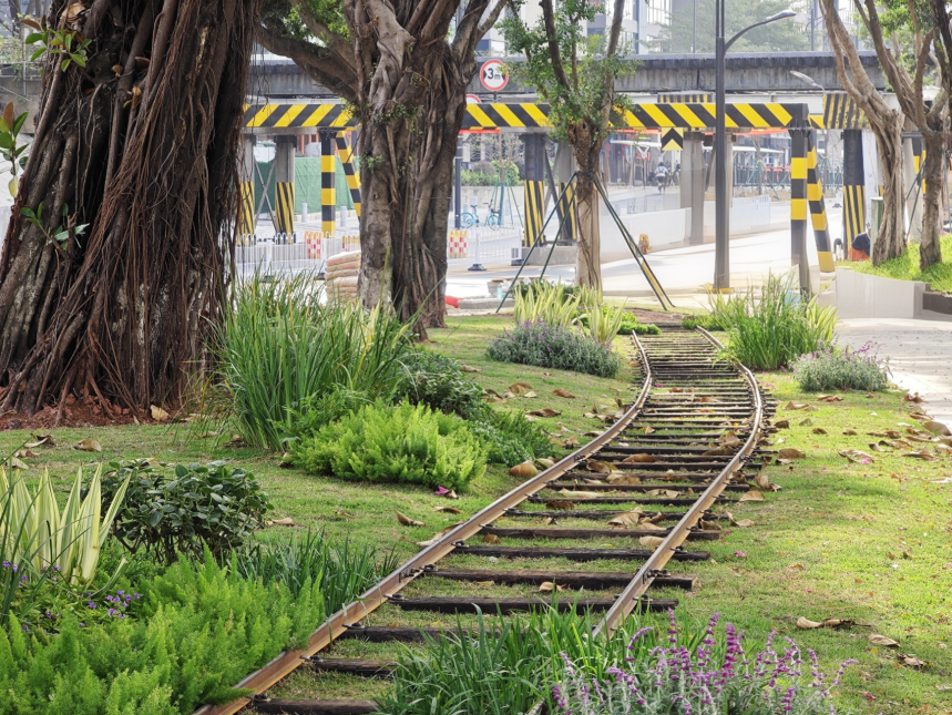花地河,以花为名。建设过程中清退了私占绿地的停车场,建设了国家植物园生态科普宣教点,让花卉文化重回舞台中央。同时,在施工中保留并活化了广钢铁路桥这一历史建筑,通过打造独特的铁路花园,让工业印记成为新的打卡点,唤醒城市记忆。