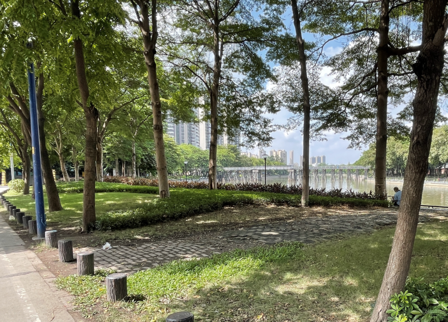 然而,随着城市发展,机动车道一度占据了滨水绿地。2024年,荔湾区水务局抓住沿岸1.38公里市政路拓宽改道的契机,在区委、区政府支持下,以“百千万工程”为牵引,启动花地河滨水环境整治示范段工程,修复被割裂的空间,重塑连续、开放、全民所有的滨水公共客厅。