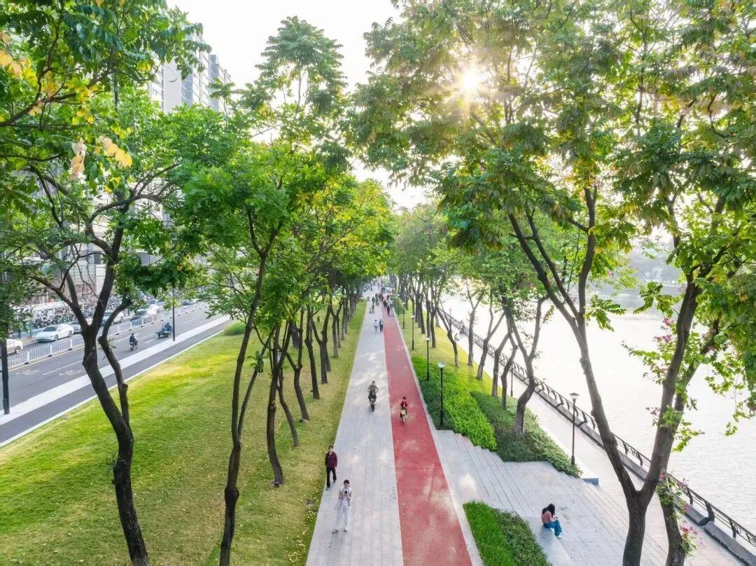 工程实施后,通过重新梳理慢行系统,实现断点通、桥底通、三道(人行道、跑步道、非机动车道)贯通。优化滨水堤岸空间,强化沿岸片区联系。曾经人车混行的堤顶路,现在是一体化的滨水步道;新增12处无障碍坡道,让轮椅、婴儿车也能轻松亲水,真正实现“畅行无碍”的公平与安全。