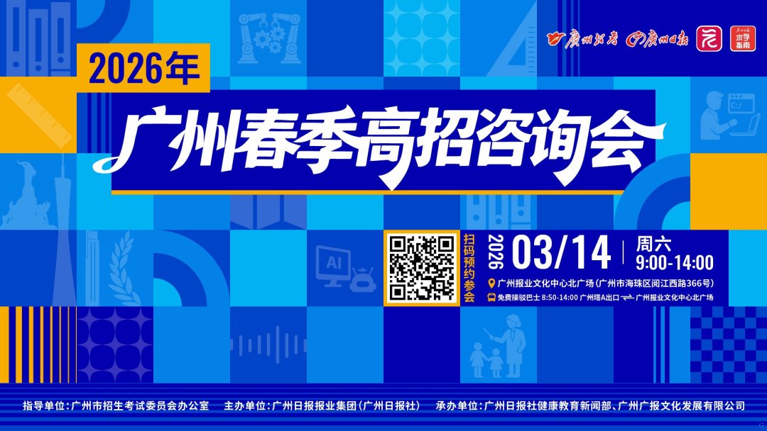 延续多年公益服务,广州高等学校春季招生现场咨询会将于3月14日在广州报业文化中心举行。