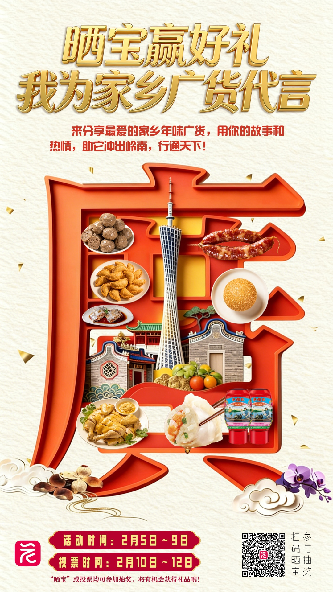 广货争“香”斗“味”,等你来撑!醒狮昂首,年味“晒”出来!讲到过年斗热闹,我们大广东最有发言权,从广府到潮汕,从客家到四邑,每个地方的“独家年味”都係一份值得晒出来的喜悦!年关将近,是时候摆开阵势,今天,“广货行天下”之“我为家乡广货代言” 活动热辣启动!我们诚邀你来晒出“心头好”,为家乡年味广货“代言”,一齐打造你我心中最正、最“惹味”的“十大年味广货”!