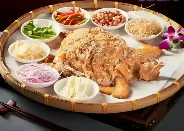 店内的竹簸箕蒸阳山鸡,采用农家走地鸡,鸡皮弹滑,肉嫩多汁,原味鲜香;七彩捞鸡,拌足七种新鲜配菜,清爽开胃;啤酒五味鸭,鸭肉用啤酒秘制,入味软烂,唇齿留香……