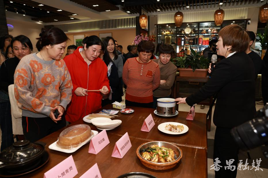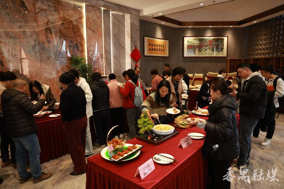 在添美食囍宴,参访团实地领略了企业以“喜庆文化”为核心、深耕宴席经济的独特发展路径。现场,该企业特别准备了用料扎实、寓意丰盈的新年盆菜,以及多款采用现代艺术摆盘的创意佳肴。这些菜式不仅食材新鲜、风味上佳、搭配新颖,更以极具视觉冲击力的呈现方式,令在场人员眼前一亮,生动体现了企业在传统节庆场景中融入现代审美与创新思维的活力,充分彰显了餐饮服务与文化体验深度融合所迸发的创新潜力。