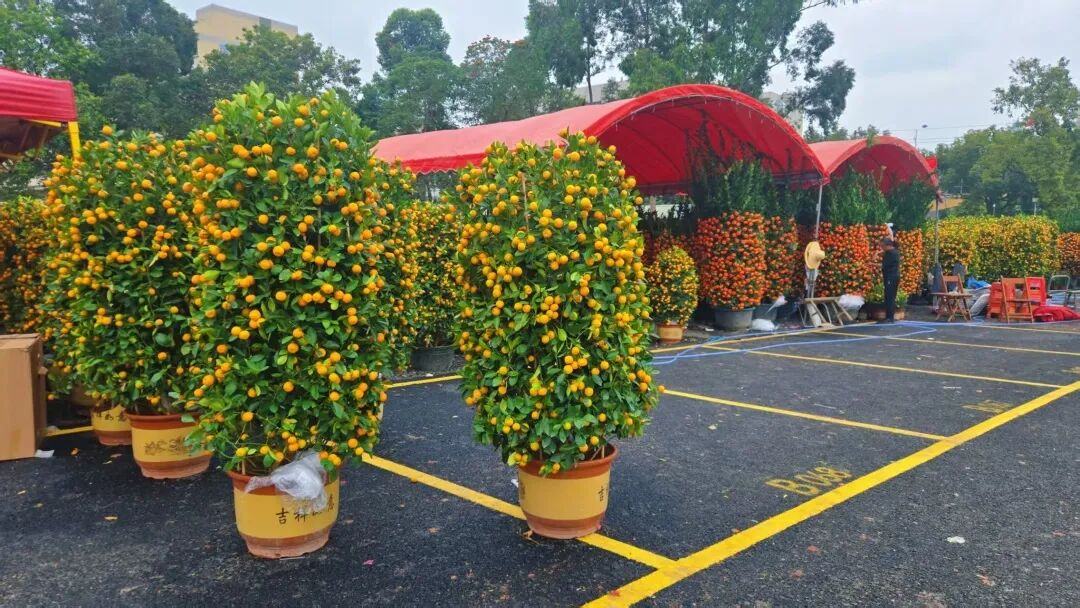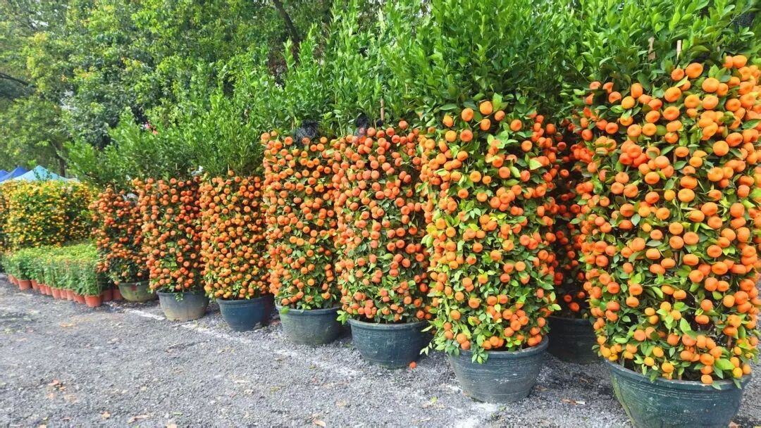 俗话说:“无桔不成年,无桔不逛花。”在广东过年的仪式感,有一半是年桔给的。在石楼花街年桔年花区,金灿灿的年桔树硕果累累,根据植株大小、造型不同,每盆价格从几十至几百元不等。不少年桔档老板表示,预计本周末将迎来首波采购高峰。