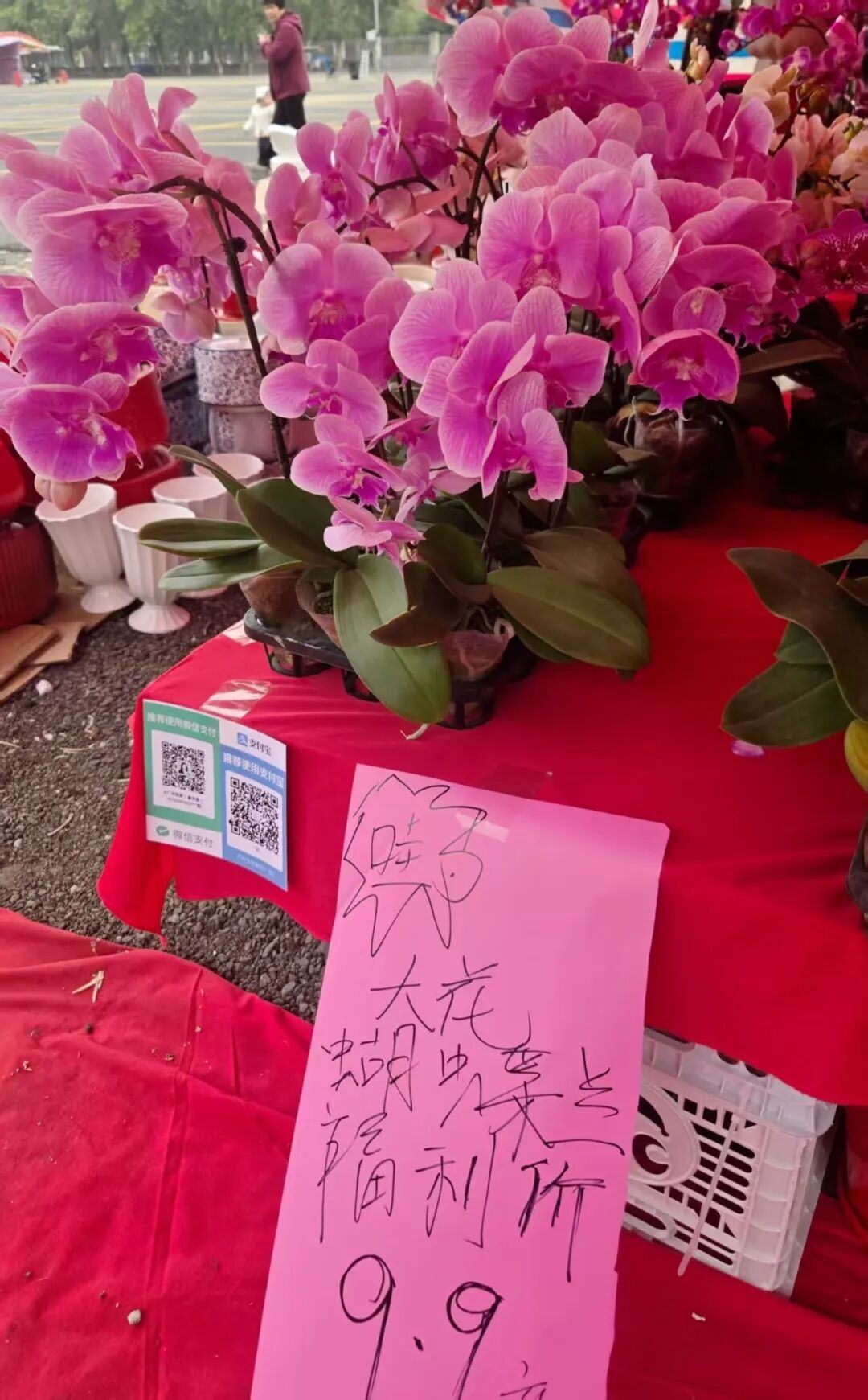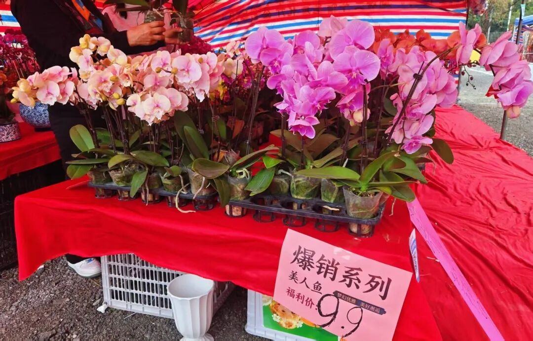 为了吸引顾客,有的档主特别推出爆款产品,如“美人鱼”品种蝴蝶兰价格低至9.9元/株,吸引不少街坊抢先选购。