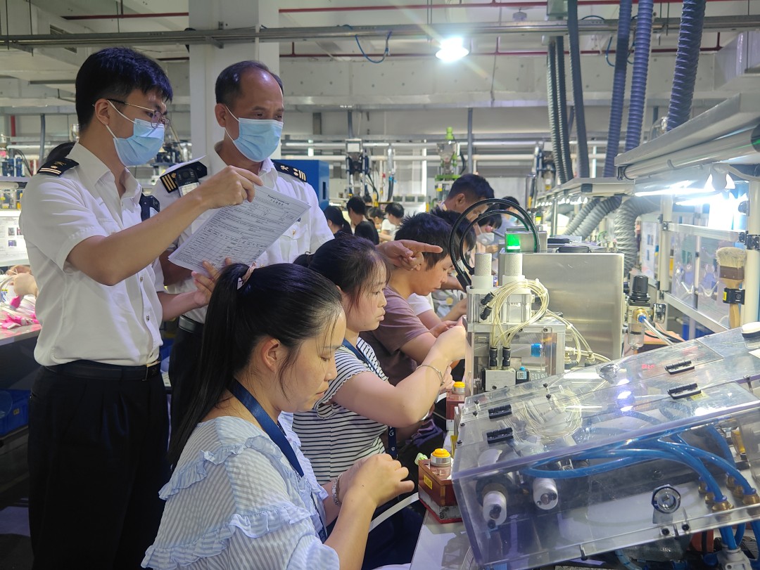 黄埔海关所属常平海关对辖区医疗科技公司进口医疗器械配件进行查验。