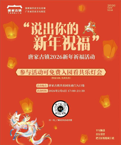 新年新愿,不如马上行动!唐家古镇已经准备好一系列祈福迎新活动,等您带上家人朋友一起祈福过大年,新年接好运!