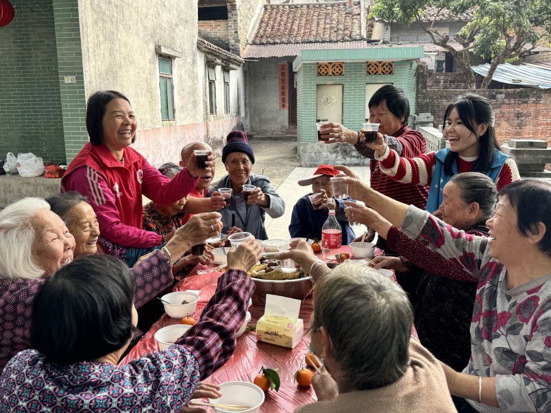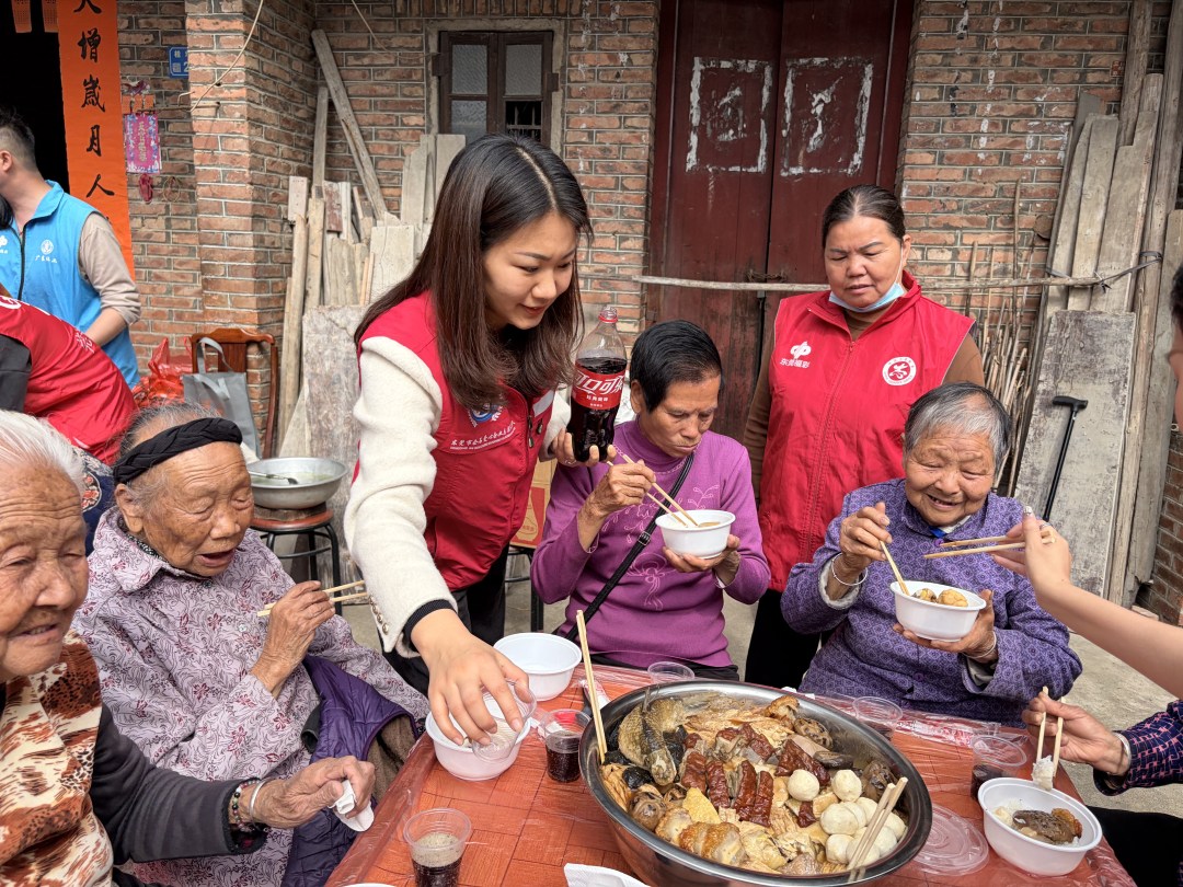 盆菜暖胃,关怀暖心。“爷爷,最近身体怎么样?”“婆婆,您今天气色真好!”用餐间隙,大家亲切交谈,细致询问老人们的日常生活与身体状况,倾听他们的心声与故事。大家如同家人一般闲话家常,并细心叮嘱老人们注意保暖、保重身体。温暖的问候与贴心的陪伴,让老人们脸上始终洋溢着幸福的笑容。