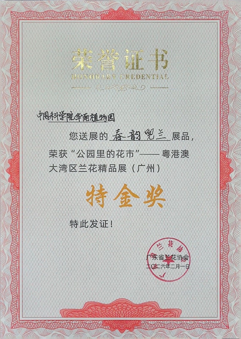 活动中千余个品种的兰花在兰圃竞秀,400多个品种参与花卉精品评奖,中国科学院华南植物园曾宋君研究员团队育成的兜兰新品牌共获得5个大奖,其中春韵兜兰获得最高奖特金奖,至尊兜兰获得金奖。