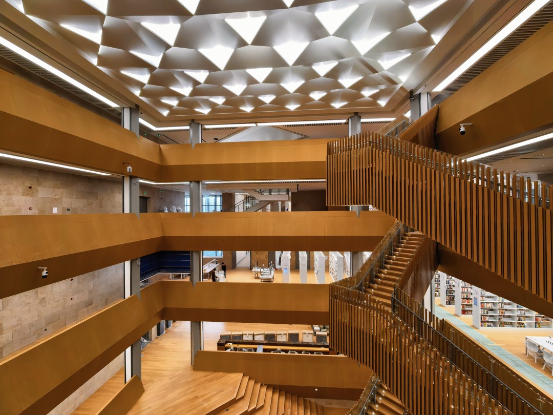 南海文化中心由美国贝氏建筑事务所与华森设计公司联袂设计,总建筑面积达17万平方米,是我国首个以“超低能耗”为目标设计建造的大型文化综合体,集图书馆、自然科学探索馆、文化馆等于一体。建筑设计采用像素分格化屋面系统,巧妙融合中国传统屋面与岭南山水云的意象,实现了传统元素的现代演绎,让岭南文化的深厚底蕴在现代建筑中焕发出新的生机。各功能体块尺度合宜、互不干扰,又通过流畅的动线紧密连接,形成一个鼓励探索与偶遇的城市文化聚落,实现建筑整体性与市民体验亲密感的完美平衡。