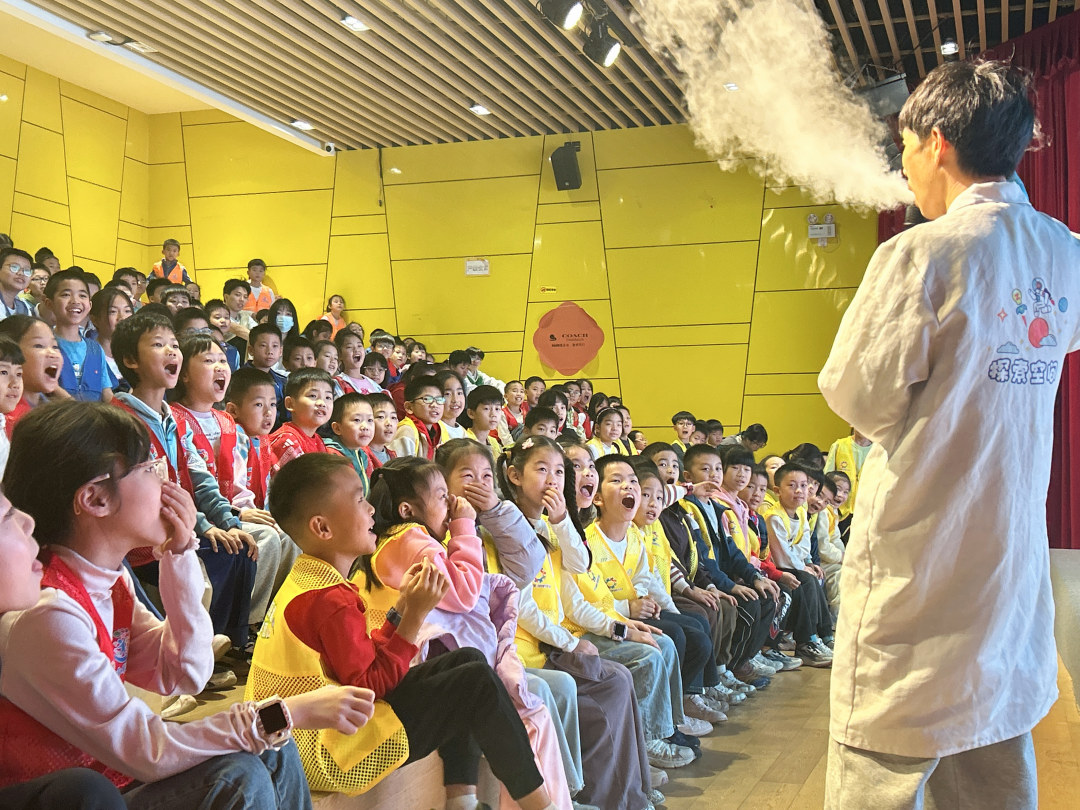 深圳“伙伴计划”“小小科学家”爱心寒托班学员观摩科普秀。