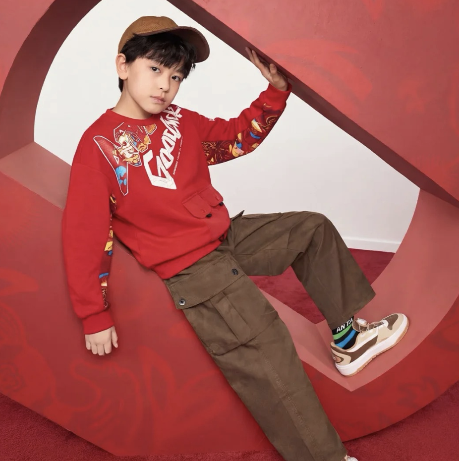 消费者欣妍最近就在给读二年级的儿子挑选拜年服,对比再三后,她选定了一件安踏“马年暖暖”系列保暖卫衣,一件巴拉巴拉的中国红灯芯绒羽绒外套和一双泰兰尼斯缓震跑步鞋。“电商平台上有年货节活动,这些国货童装优惠力度大,品质好、设计也挺精致,就一次全买齐了。”她说道。