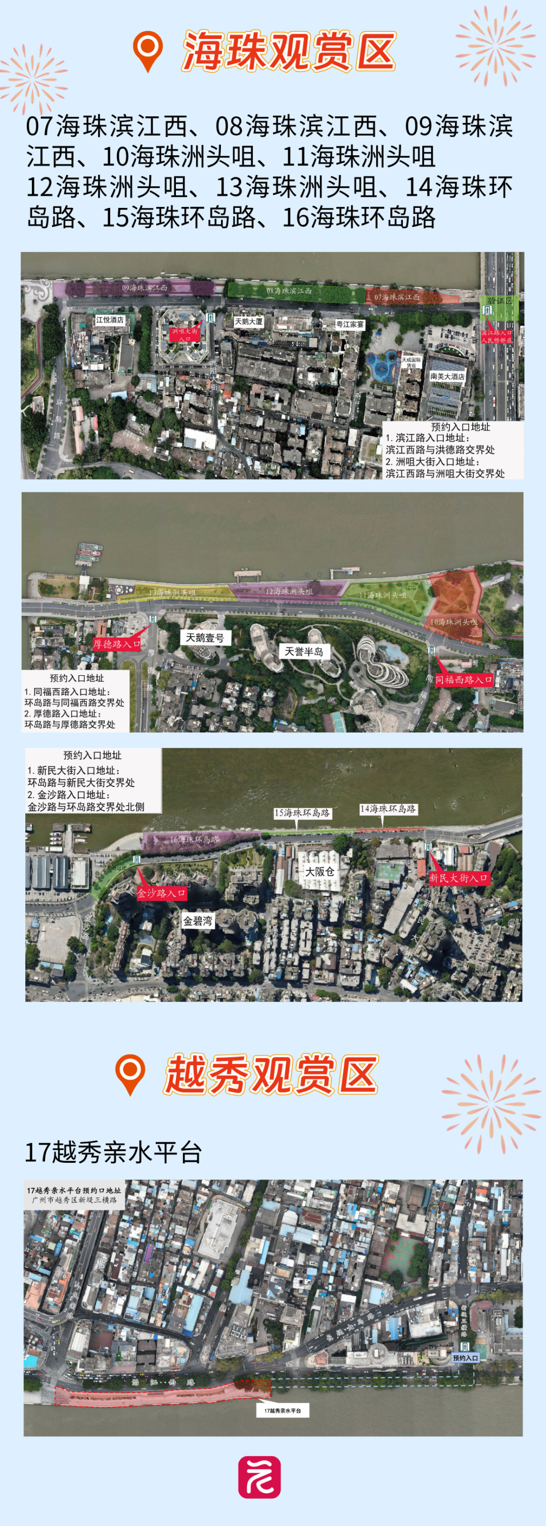 💡预约时可自行选择观赏区域(荔湾、越秀、海珠),中签后由系统分配预选观赏点,请按照中签信息提前安排行程,按时进入指定观赏点。中签预约单不可转让出售。