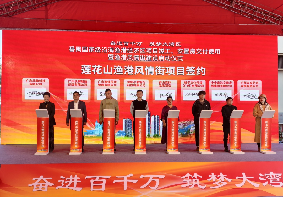 活动当天,领导、嘉宾共同见证项目竣工与安置房交付,广州渔家文化馆揭牌,渔港风情街建设启动,15家企业合作签约,为渔港风情街建设注入动力。