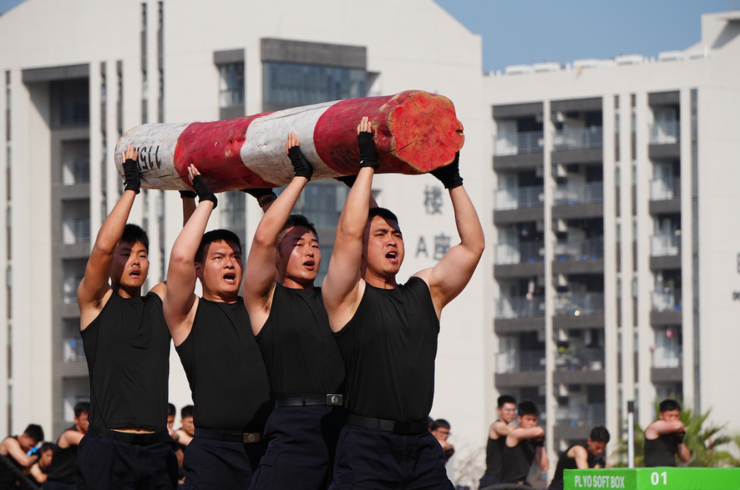 甩15米长的战绳、推举40斤的弹药箱、翻320斤的轮胎、扛超200斤的原木……新警们在综合体能训练环节展示了单警力量和团队协作,赢得现场阵阵喝彩。棍术训练中,新警们动作干脆利落,整齐划一,刚劲有力,气势磅礴。