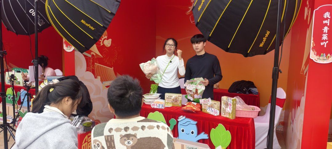 线下市集热度爆棚,线上直播间同样热闹非凡,成为现场一道亮眼的风景线。活动现场,27个直播间一字排开,聚光灯次第亮起,手机架、补光灯等直播设备林立,镜头齐刷刷地对准桌上的清远好物,氛围感拉满。44个主播团队、近百名网红达人轮番登场、无缝衔接,对着镜头热情推介清远好物。“家人们看过来,这款西牛麻竹笋脆嫩爽口,无论是炒肉还是煲汤都特别鲜,今天直播间专属福利,拍3发4!”主播们手持产品,从品质特点、烹饪方法到新春优惠福利娓娓道来,不时试吃、开箱,与网友实时互动答疑,直播间氛围持续高涨,与一旁的市集烟火气相映成趣。