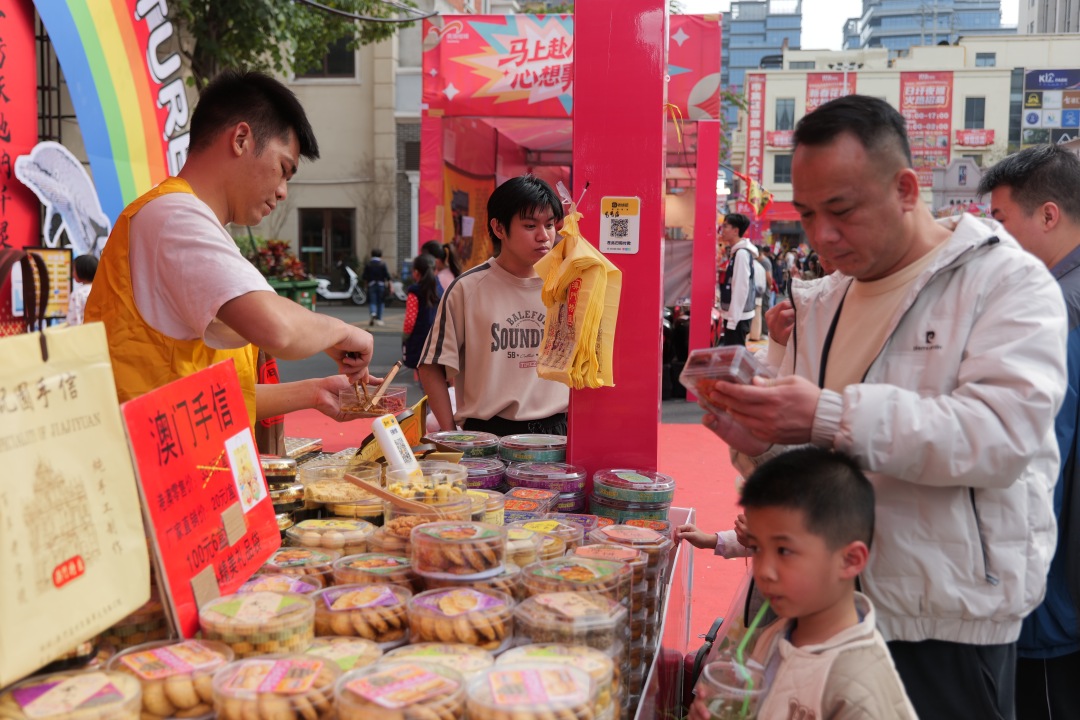 此外,赛博机械马吸睛十足,“AI骑马大作战”活动深受欢迎,市民可现场合成骑上机械马的照片,赛博氛围与AI元素拉满;美食区的环球特色美食、儿童游乐区的马元素主题项目,以及非遗技艺展演、行运大风车、刮刮乐等活动,让市民游客在逛花市的同时,既能感受传统文化魅力,又能体验潮流乐趣。