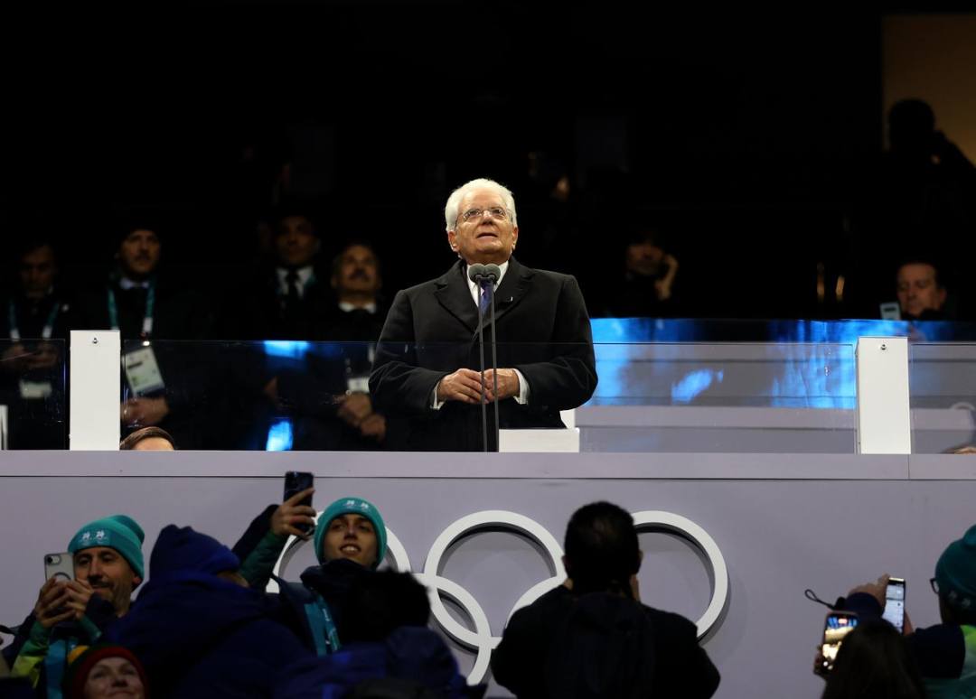 在米兰-科尔蒂纳冬奥会开幕式现场,意大利总统宣布2026年米兰-科尔蒂纳冬季奥运会正式开幕!