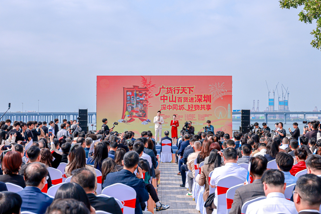 2月7日,“广货行天下・中山百货进深圳——深中同城・好物共享”活动在深圳市宝安区欢乐港湾摩天轮广场正式启动。此次活动由中山市人民政府主办,为期两天(2月7日—8日),以深化深中同城一体化建设为核心,搭建起两地产业联动、消费互通、文化相融的桥梁,集中展现中山制造实力、城市魅力与生活品质,为深圳市民和游客带来一站式年货购物与休闲体验。