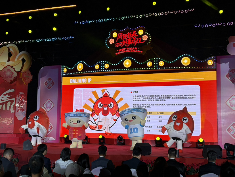 据悉,启动仪式上,主办方正式发布顺德“东部组团”大良、容桂、伦教三镇新春联动旅游线路及重点活动,并揭晓大良城市IP形象“皮皮”和“鲤鲤”,以文化为纽带推动东部组团协同发展。