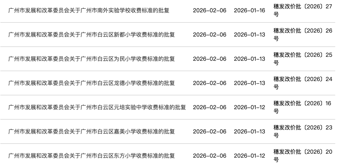 2月6日,广州市发展和改革委员会在信息公开平台发布了关于多所民办学校收费标准的批复。其中,白云区元培实验中学、为民小学、龙德小学、东方小学等学校收费标准有所降低,其余学校的收费标准维持原标准。