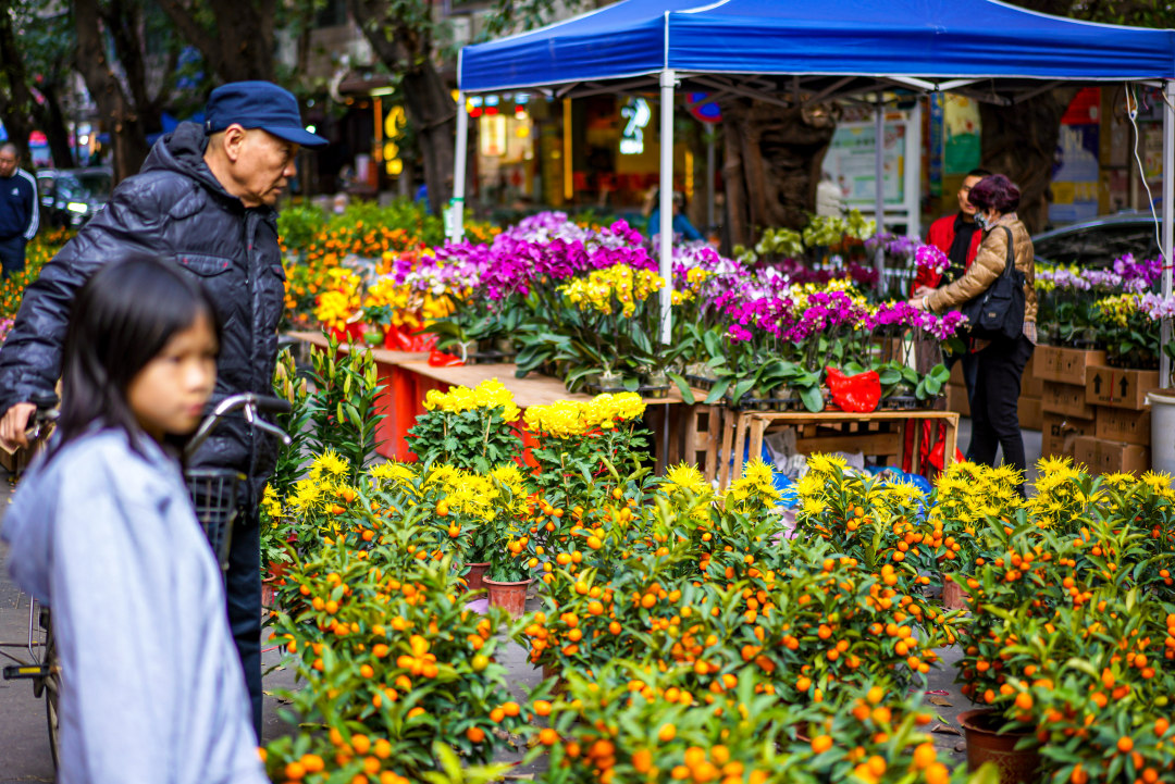 “街坊花市”开在街头,让居民走到楼下就能买到心仪年花。