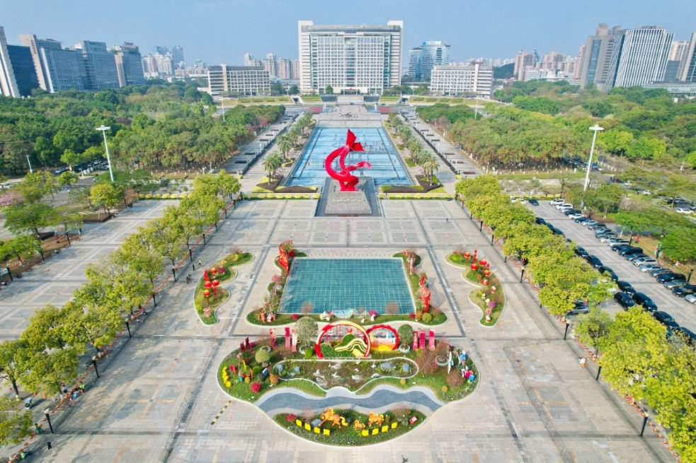 位于广场中央的主花坛“跃马迎春”气势恢宏,长38米、宽23米,围绕“跃马迎春”“马到成功”“智创优品、和美宜居”及“智创未来”四大主题展开设计,生动诠释龙马精神的奋发姿态。花坛中还融入东莞科创元素、潮流玩偶形象与“和美宜居”的城市理念,展现出东莞在新一年的活力与追求。