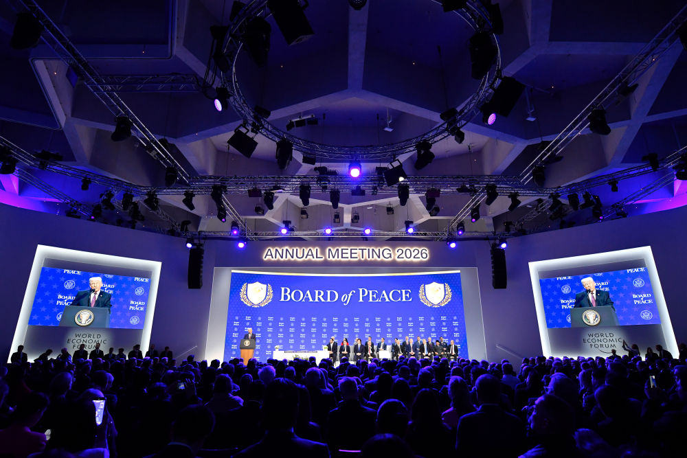 1月22日,美国总统特朗普在瑞士达沃斯举行的世界经济论坛2026年年会上签署文件,启动所谓“和平委员会”。新华社记者连漪摄