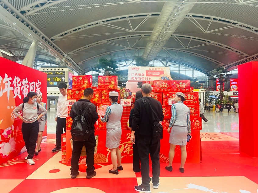 春节将至,年味渐浓。为丰富旅客春运出行体验,提供更便捷、温馨的服务,国铁广州局悦享动餐于2月7日至16日在广州南站、广州白云站、深圳北站、长沙南站四大枢纽同步推出“马上有喜市”主题年货手信市集,让旅客在候车间隙即可轻松置办优质年货,将粤湘两地的地道风味与旅途祝福一并带回家,满载温情出发。