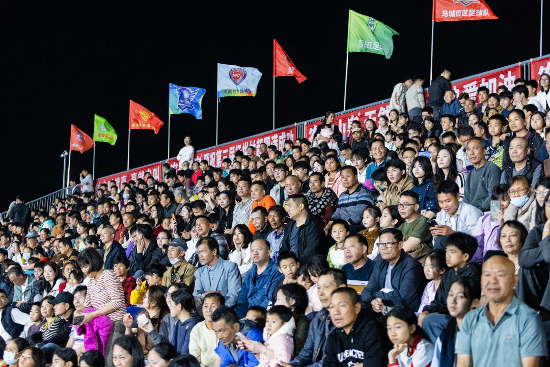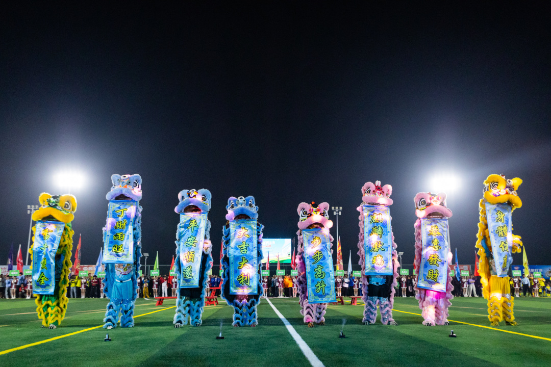 第三届赛事的开幕式堪称“乡土盛宴”,将热闹氛围推向极致。这场精心编排的“村晚”式盛典,一小时内亮点纷呈:国家级非遗遂溪醒狮腾跃绿茵,红金狮头与草坪相映成趣;舞蹈《鸿运阿柑狮》、花球啦啦操点燃现场激情,《海阔天空》《奔跑》等歌曲引发万人大合唱。最动人的莫过于百岁老人登台授球,长寿文化与足球精神交相辉映;绚烂烟花划破夜空时,首届 CMG群众足球邀请赛全国冠军湛江热点队与杨柑村超联队的揭幕战鸣哨开赛,本土韧劲与专业风采的碰撞,让赛场欢呼声此起彼伏。没有华丽舞台,却有最质朴的热情;没有明星大腕,却有全村人的同心聚力,这场盛典完美诠释了乡村体育的人文温度。