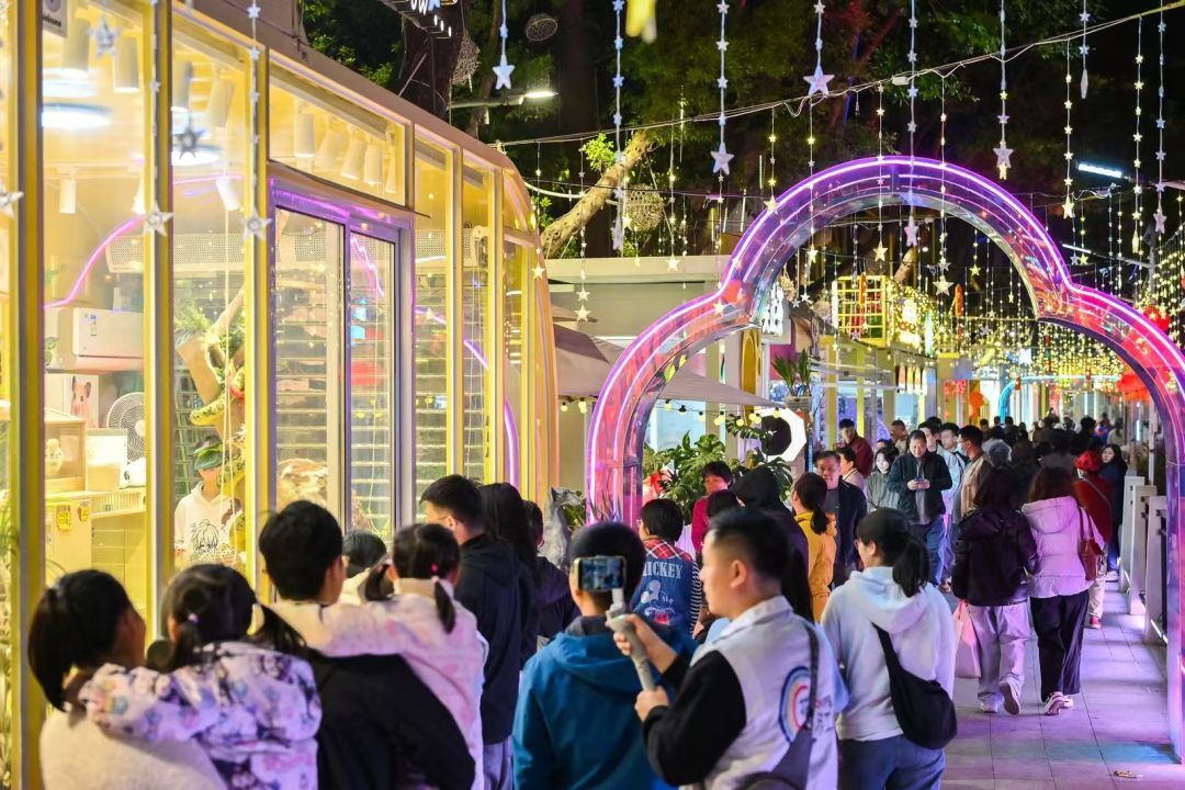 2026年2月8日晚6时30分,华灯初绽,广州市海珠区江南东路沉浸在浓郁的新春氛围之中,“瑶溪文宠时光花街”二期开街暨萌宠科普长廊开幕仪式举行。现场张灯结彩,大红灯笼高悬,五彩斑斓的彩带随风摇曳,处处洋溢着新春的热闹与喜庆,欢声笑语回荡在每一个角落。