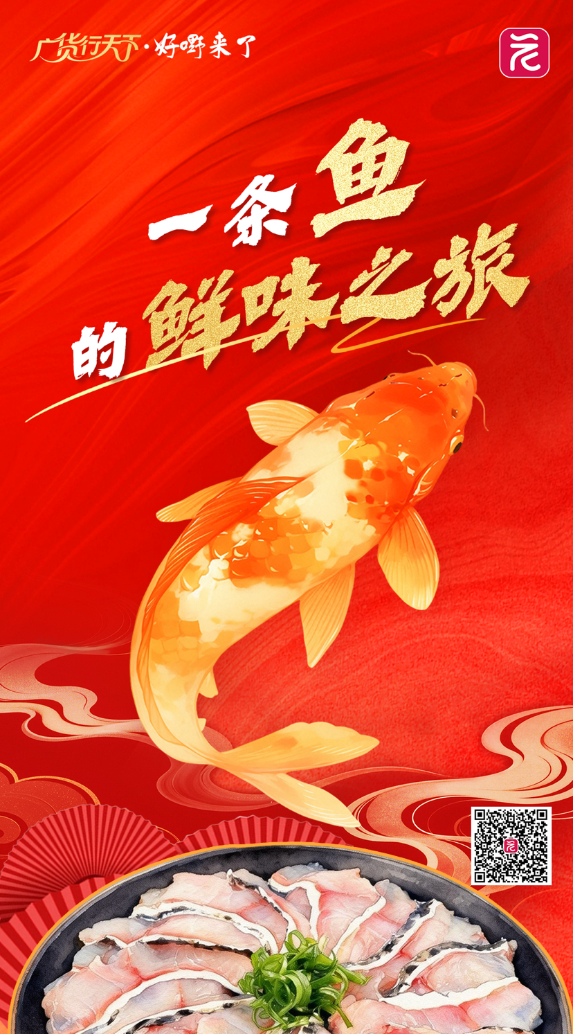 一尾粤产鲜鱼,从岭南塘头游向全国、飘香全球,是粤人匠心的凝练,更是 “广货行天下” 的生动缩影。它凝萃着广货的安全与优质,承载着岭南烟火的温情,以 “年年有余” 的美好寓意,跨越山海奔赴万家团圆。