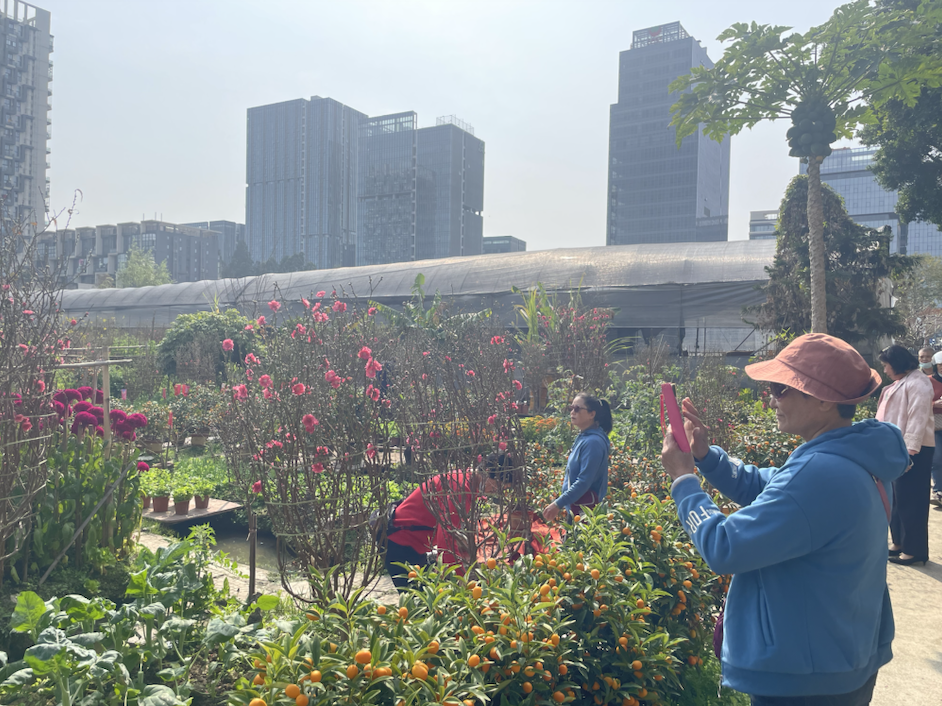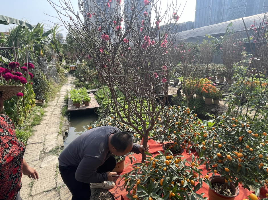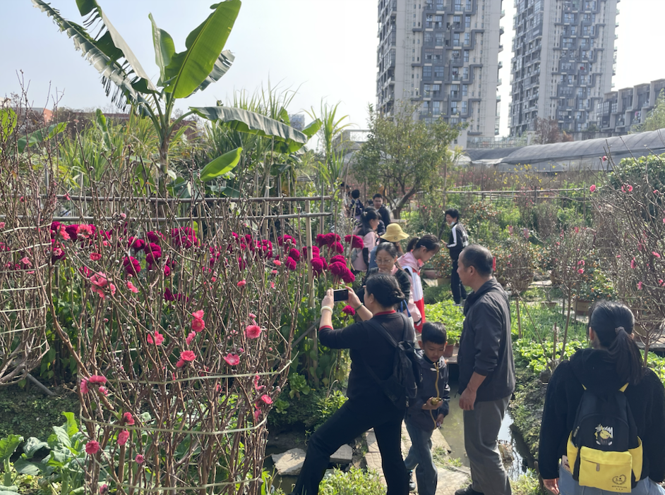 “我们这边以在地销售为主,相比外面花市,价格更实惠些,桃花品种和品相的选择也更多。”黎姨介绍,“顾客可以亲自在花田里边走边挑,真切地感受桃花的美。”平时不少客人会开车或骑三轮车前来,有的人现场挑选、现场砍枝,直接装车带走;也有客人提前预订,等临近春节时再来取花。