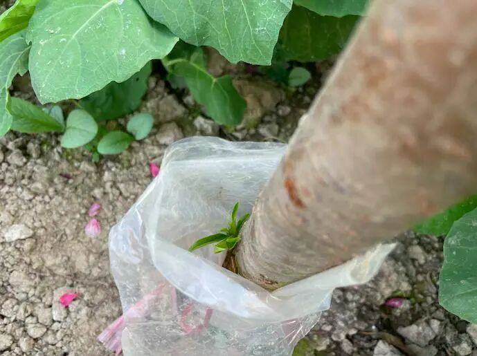 桃花刚开始种的时候,浇水和施肥都很重要。平时,黎姨会从田间的河沟里把河泥挖出来,填在树根周边,也会用花生麸作为肥料混合在土壤里,可以补充有机质。到了五月五左右,桃树初长成,这时候就要加强对桃树的保护了。施肥、驱虫、修剪,样样不能少;到了九、十月,就要开始摘除叶子了,这时候施肥和浇水的次数也会开始减少。至于何时开花,就要等到农历十二月,看天时。
