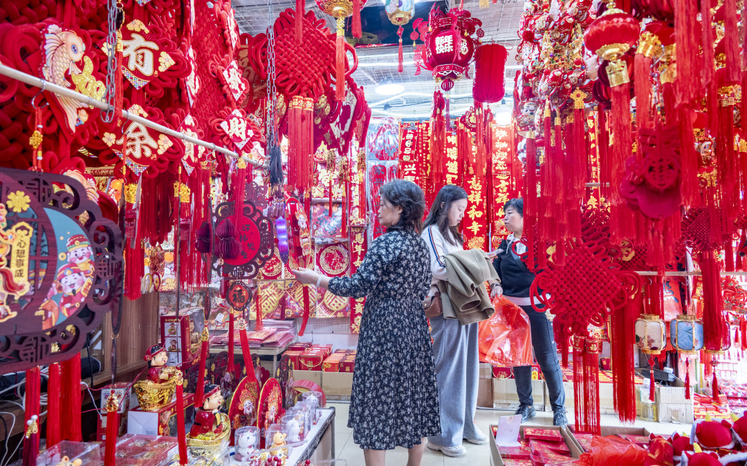 市民在一德路年货街选购年货,满眼都是喜庆的“中国红”。