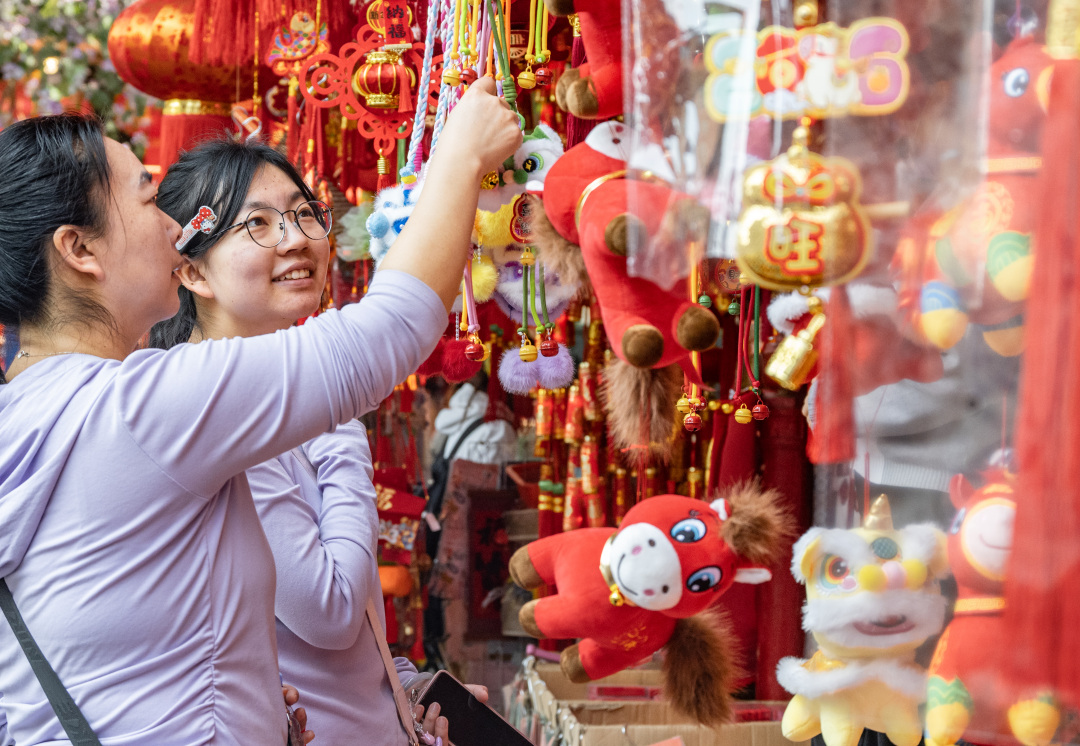 记者还见到,除了采购年货的市民,一些年轻人还将这里作为体验传统年俗的“打卡点”,在充满烟火气的街头拍摄年味“大片”。