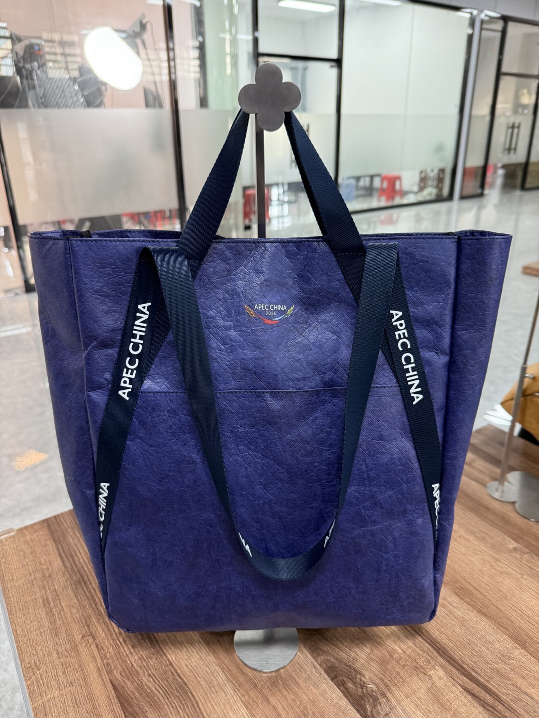 这款环保公文袋采用可回收环保杜邦纸为材料,既耐磨又轻便。包包正面印有“APEC CHINA 2026”标识与专属麦穗彩标,让人眼前一亮。包带两侧清晰印着“APEC CHINA”字样,强化辨识度与纪念意义。大容量的造型设计兼顾实用性与时尚感,让与会嘉宾能够轻松容纳各种随身物品,收获诸多好评。