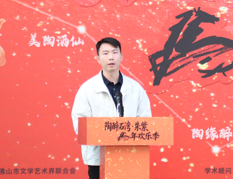 石湾镇街道办事处副主任谭启洋阐述石湾陶文化深厚积淀,致敬老一辈艺人的陶塑传承执着。他表示,4号厅“陶承酒韵·醉美新年”以酒为春节主题,借民俗融合守正创新,打造兼具传统与时代特色的文化盛宴,带动群众共享共创,激发本土文化活力、推动传统节日焕新。