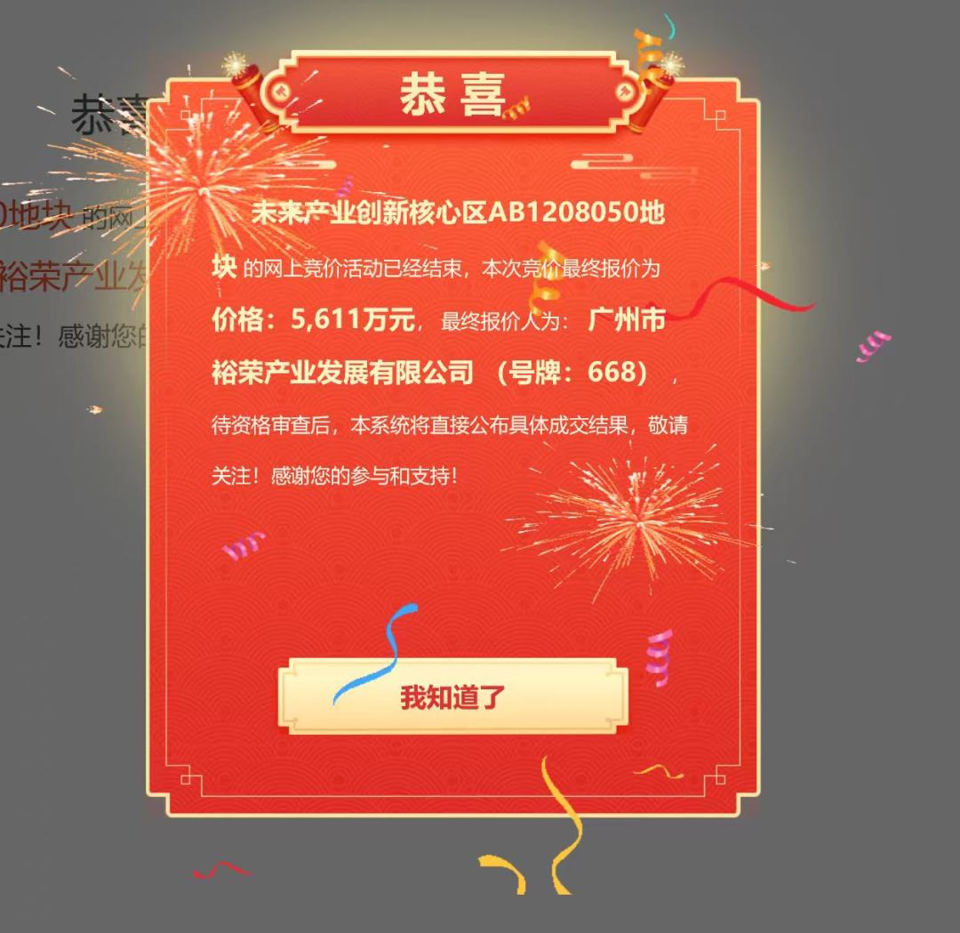 2月9日上午,广州民营科技园未来产业核心区成功出让1宗一类工业用地,由广州市裕荣产业发展有限公司以5611万元竞得,拟投资4.5亿元建成广州白云人工智能产业智造基地,项目达产后预计实现年均工业产值10亿元。