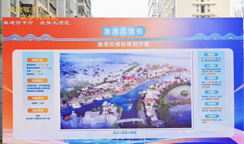 据介绍,渔港风情街将深度融合疍家特色与渔港文化,发展以渔家美食、文创体验、休闲观光为主题的特色商业,与莲花山景区联动,助力番禺打造5A级旅游区。项目运营后,将带动4条渔村集体年收入实现跨越式增长,帮助经济薄弱渔村实现从“依赖补助”到“自主增收”、从“无留用地”到“有商业街区”的转变,助力实现强村目标。
