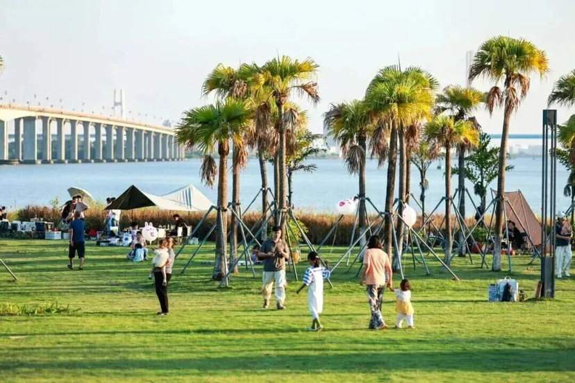 慧谷超级堤是网红骑行、露营打卡点,位置绝佳,距离灯会举办地滨海公园不远。