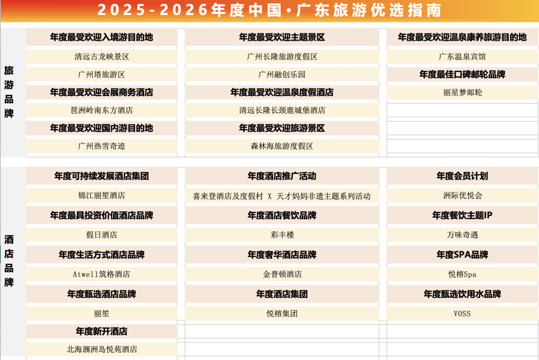 2025年,是文旅行业拥抱变革、追求卓越的一年。业界以匠心深耕,以用户为本,在时代浪潮中铸就辉煌答卷。近日,广州日报新花城“悠游”频道倾力推出年度“中国·广东旅游优选指南”,汇聚了一批以极致体验、持续创新为内核的文旅标杆项目。它们不仅是行业典范,更是消费者反复选择与真诚推荐的“口碑顶流”,覆盖文商旅体融合、主题乐园、城市微度假、乡村振兴、国潮焕新、高端度假与特色餐饮等多元业态,生动描绘了文旅体验从“值得一去”到“值得再访”的崭新图景。