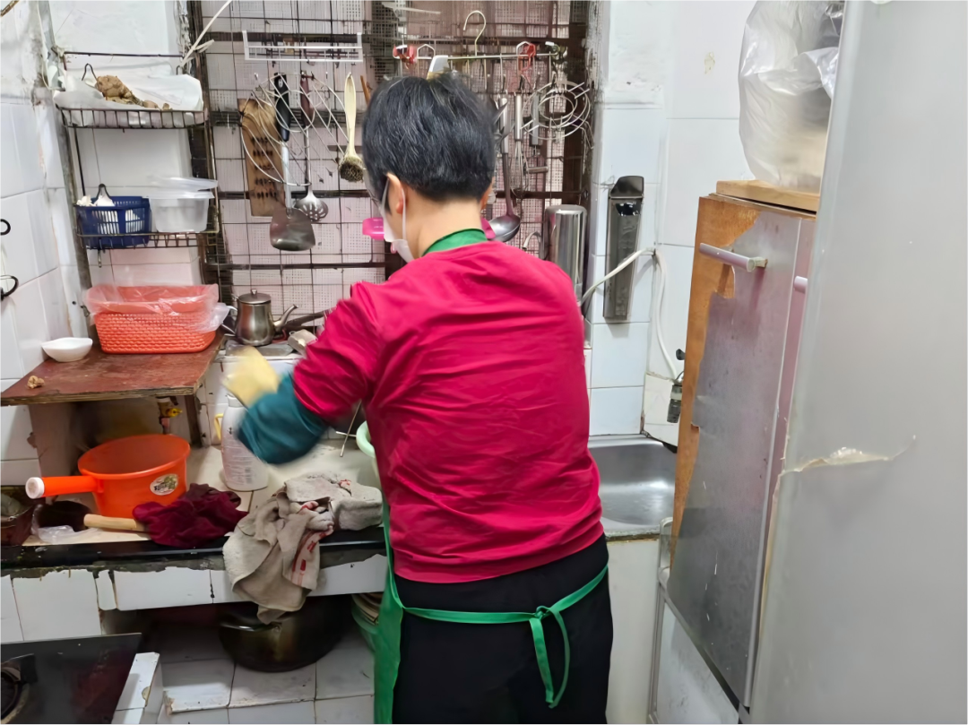 48岁的阿敏患有智力障碍和癫痫,与78岁的听障父亲和76岁体弱的母亲相依为命。这个家最常去的地方是医院,最多的时间是彼此守候。两位老人自身病痛缠身,却须时刻看护可能突然发病的女儿。弯腰扫地、擦拭家具,这些简单的动作对他们而言已是沉重的负担。他们只希望,在春节前有人能帮忙做一次家庭大扫除,让这个彼此守护的小家,能整洁清爽地迎接新年。当家政阿姨完成服务,家中焕然一新时,阿敏的母亲拉着扬爱社工的手轻声说道:“家里亮堂了,心里也跟着亮堂了。”