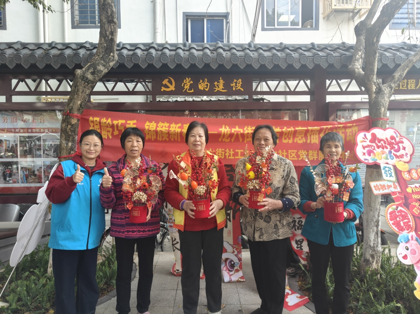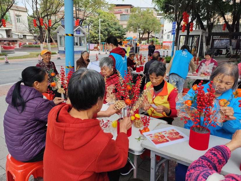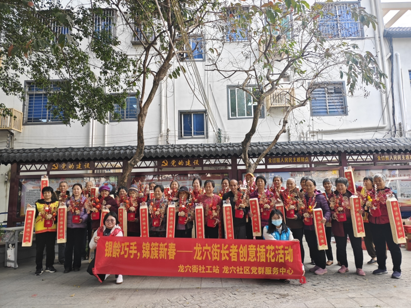 新春将至,暖意融融。2026年2月9日上午,广州南沙龙穴街社区党建公园内欢声笑语不断,一场以“银龄巧手,锦簇新春”为主题的长者创意插花活动在此温馨开展。本次活动由龙穴街社工站携手银龄志愿者共同策划,联合龙穴街社区党群服务中心组织落实,旨在通过长者互助模式激活社区内生力量,发挥银龄志愿者作用,丰富长者精神生活,提升长者自我价值感与社会参与度,营造团圆祥和的节日氛围,共吸引24名长者积极参与。