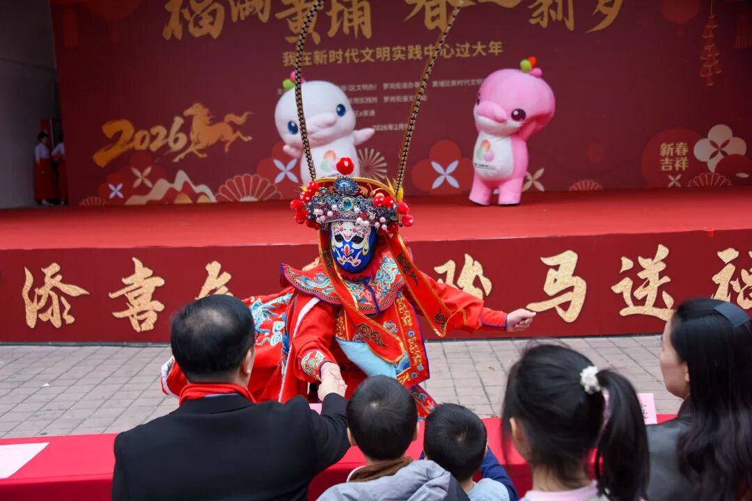 本次活动不仅有摇滚、曲艺、舞蹈等丰富多彩的文艺表演,还特别安排了川剧变脸环节。变脸演员走下舞台,来到观众中间,在握手的瞬间变换脸谱,引得现场小朋友兴奋得尖叫连连,纷纷围上前去,近距离感受这门传统艺术的神奇魅力。与此同时,“大湾鸡”也强势“加盟”,与台下观众互动合影,把现场气氛推向高潮。