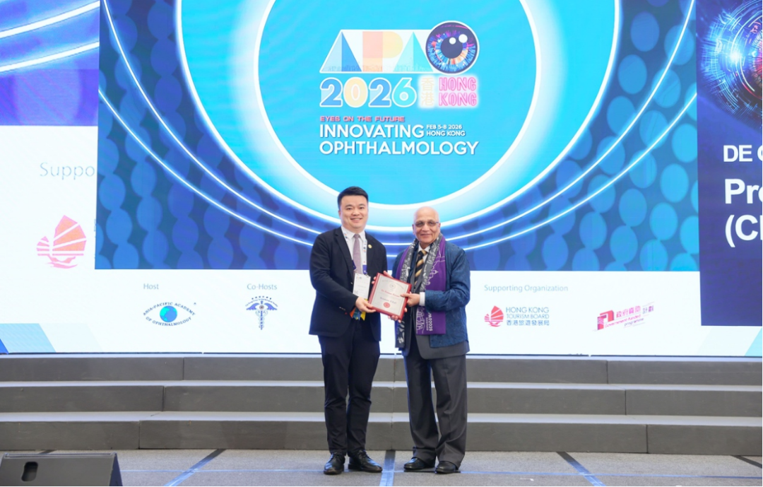 2026年2月5日至2月8日,第41届亚太眼科学会年会(APAO 2026)于中国香港举行,汇聚全球眼科精英共襄学术盛举。记者获悉,本次年会中山大学中山眼科中心专家学者喜讯频传,凭借在眼科前沿领域的卓越贡献,一举囊括包括最高学术成就奖在内的多项重磅荣誉,向世界充分展示了中国眼科在科技创新与临床转化方面的雄厚实力与引领地位。