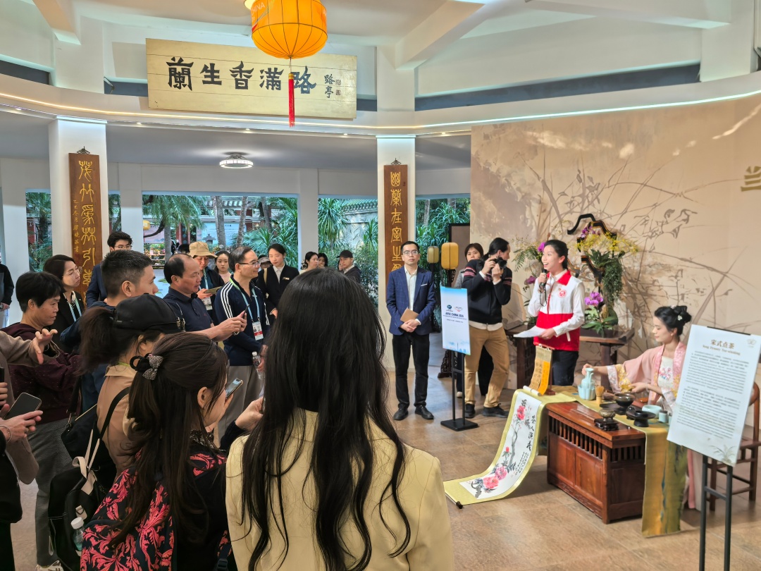 广州兰圃志愿者为参会嘉宾提供“宋代点茶”体验服务。