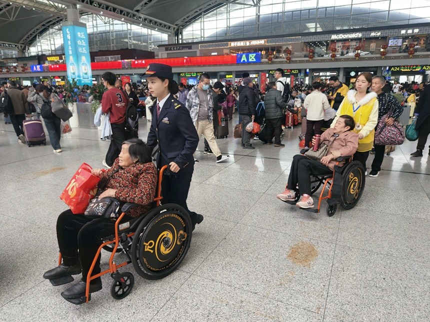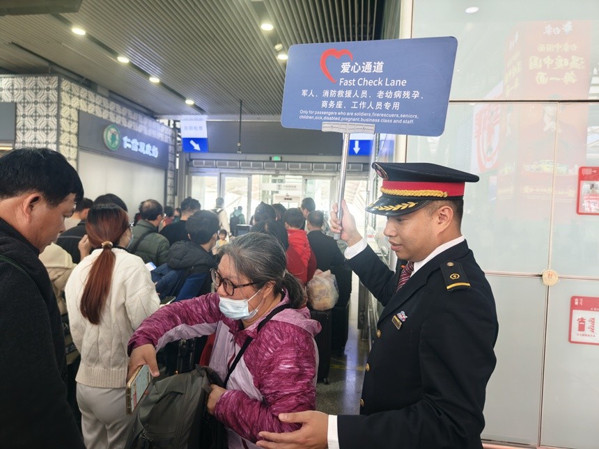 春潮涌动,暖意随行。春运客流高峰期间,广州南站候车大厅内年味渐浓,客流如织,无数旅客带着对团圆的期盼奔赴远方。针对老年旅客出行需求,广州南站聚焦购票、进站、候车、乘车全流程,精准破解智能时代“数字鸿沟”,推出一系列细致入微的适老举措,打造无缝衔接的暖心服务链,用责任与温情为“银发”旅客铺就畅通、安心的归家之路。